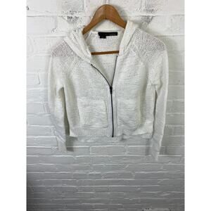 360 Cashmere Women's Open Knit Hooded Full Zip Sweater Long Sleeve Size XS