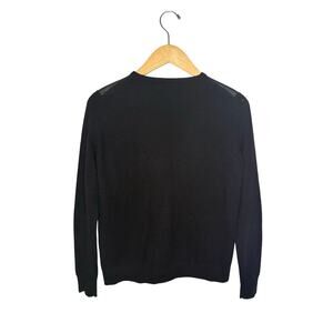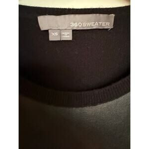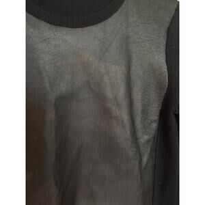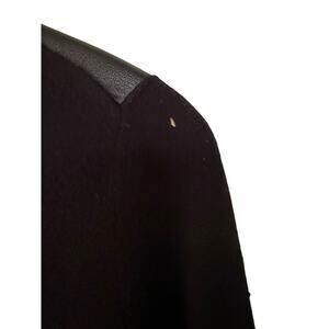 360 Cashmere Wool Leather Front Sweater Women’s Size XS Black Crewneck Pullover