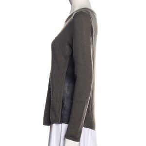 360 Cashmere Wool Ribbed Knit Sweater Leather Side Panel Long Sleeve Pullover L