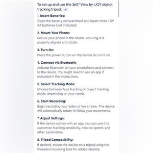 Object and Face Tracking Tripod. Requires 3 AA batteries, Used Once, Bluetooth, Tripod Compatible.