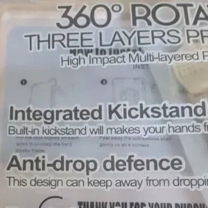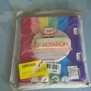 Multi-colored tablet case with 360° rotation. Features three layers of protection.