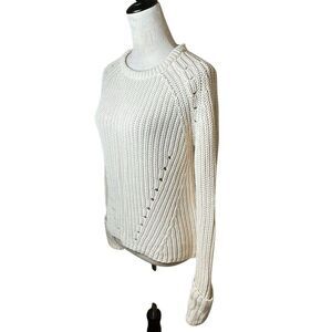 360 SWEATER Ivory Knit Pullover Womens Medium | Cozy Classic Ribbed Cotton Blend