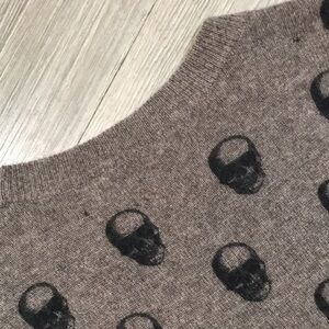 360 Skull Cashmere Cara Jack Brown Skull Print Cashmere Sweater Size S