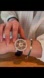 360 Spin Gem Stones Watch Rotating Dial Quartz Rose Gold Leather Strap Black