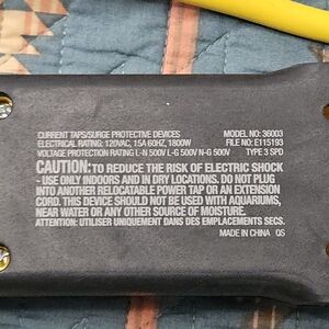 Enhance your workspace with the Electric Family Yellow Power Strip. This vibrant yellow surge protector offers 1080 J. 8 foot. Used but in perfect condition