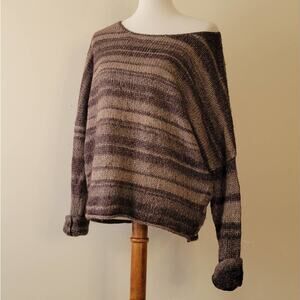 360 Sweater Brown/Taupe Wool Blend Boat neck Relaxed Pullover Sweater