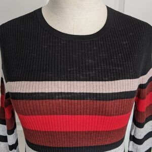 360 Sweater Knit Crew Neck Long Sleeve Striped Fitted Black Red White M NWT