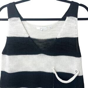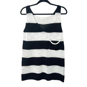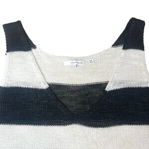 360 Sweater Linen Blend V-Neck Sleeveless Tank Knit Sweater Black Stripe Sz S