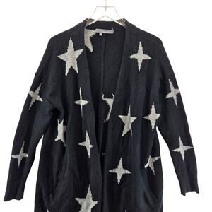 360 Sweater Longline Open Cardigan Sweater Large Wool Cashmere Black Gray Stars