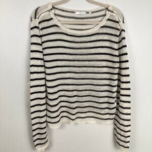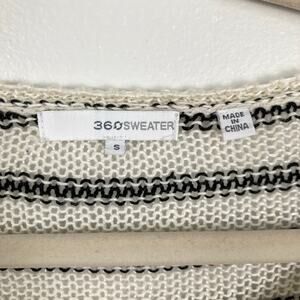 360 Sweater Womens S 100% Linen White Striped Open Knit Sweater Beachy Coastal