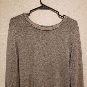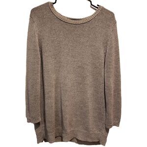 360 Sweater Women's Size Medium Taupe Tan Linen Blend Open Back Sweater Chunky