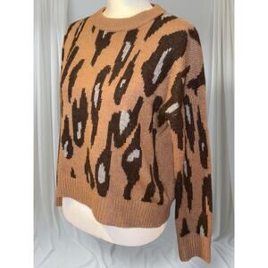 360Cashmere Leopard Print Sweater Tan Brown Gray Crewneck Size XS