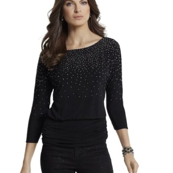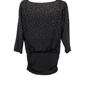 White House Black Market Silver Studded 3/4 Dolman Sleeve Black Ruched Top Size S