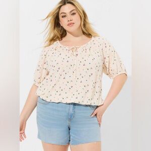 364. Torrid bees and flowers Gauze Blouson Half Sleeve top size 1 (1X)