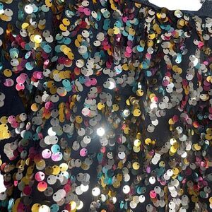Multicolored girls pull on mini skirt. The skirt has multicolored sequins all over and is lined. Great overall condition. No rips or stains. Minimal signs of wear on the sequins that have been pictured.