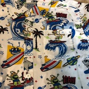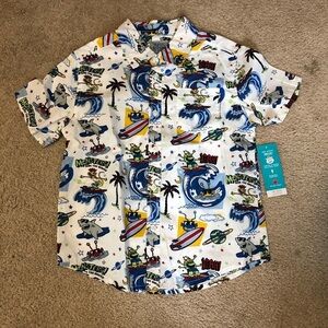 365 kids short sleeve button down collard shirt size 7. Monsters, aliens, sharks. Brand new with tags.