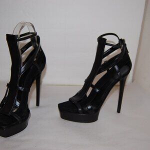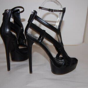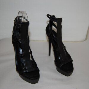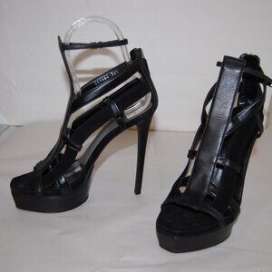 36.5/6.5❤️GUCCI Daryl Black Suede Leather High Heel Platform SANDALS ITALY
