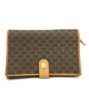 Celine Clutch Bag Macadam Brown PVC Canvas