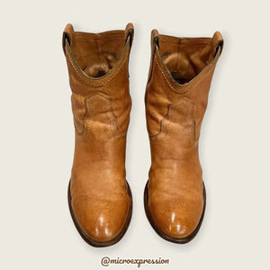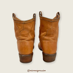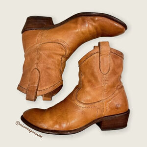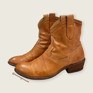 $369 Frye Carson PullOn Tan Brown Leather Western Low Heel Festival Cowgirl Boot