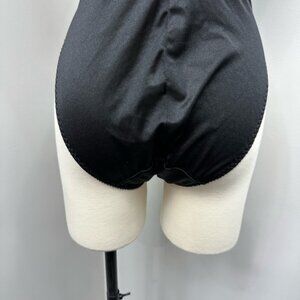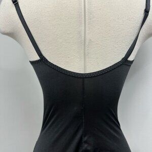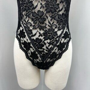 Lightly worn but in good condition. Sheer black lace bodice. Clasps along groin. Underwire with no additional padding. Victoria’s Secret gold label