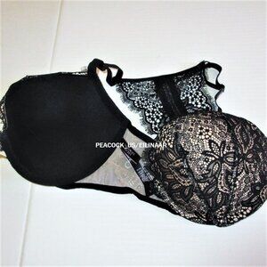 36DD VICTORIAS SECRET Very Sexy Push Up Bra Studded Racerback Front close Black