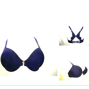 36DDD Unveiled Felina Beautiful Love Front Close Underwire Bra Navy Blue NWT