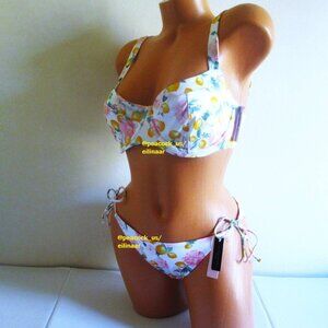 36DD/M Victoria Secret Swim Push Up w/o pad Top Bikini Set Side Tie Cheeky botto