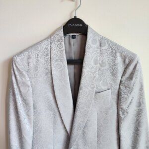 36L Dinner Jacket Silver Gray Shawl Lapel Skinny Fit Long New Jos A Bank Paisley