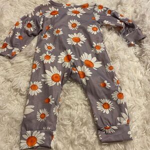 3-6M Gray & White & Orange Daisy Footless Onesie. Worn a few times. In great used condition!