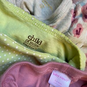 3-6 Month Bundle (3) Girl Clothes. Tahari long sleeve floral onesie, Carter’s green with white dots short sleeve onesie, and baby views pink leggings. All in EUC.