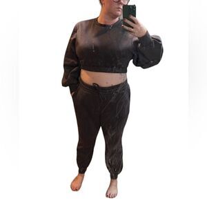 36. Zenana Plum Cropped Sweatshirt & Highwaist Joggers with drawstring NWT