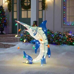 36in MARLIN Tinsel Longfin Saury LED Christmas Light Yard Sculpture 3 Ft Fishing