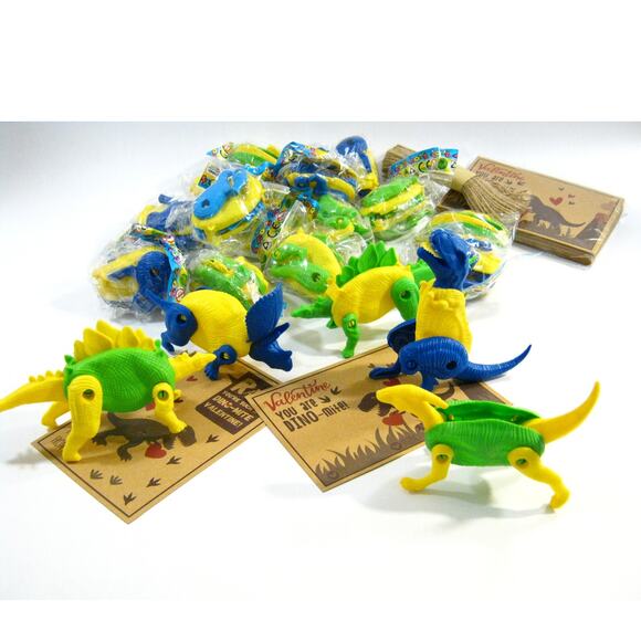 36pc Kids Valentines Day Cards Plastic Dinosaur Church Party Classroom Exchange