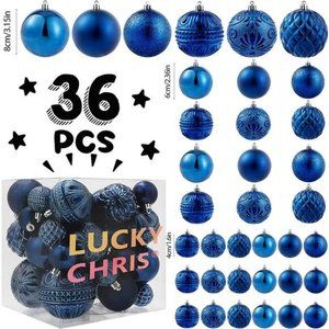 36pcs Navy Blue Christmas Tree Decorations Set, 6 Styles (Small Medium Large)