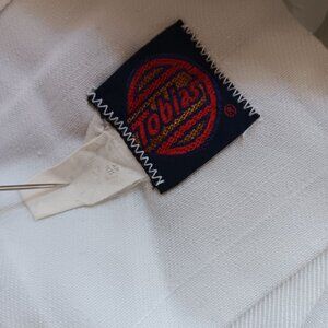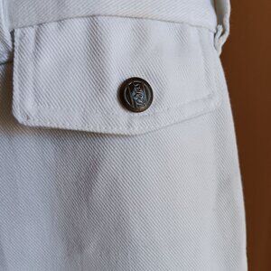 Crafted with a timeless style, these white twill pants from Tobias exude a vintage charm. Featuring high-waist straight legs, buttoned pockets, and durable construction, they offer a classic look perfect for retro-inspired wardrobes.