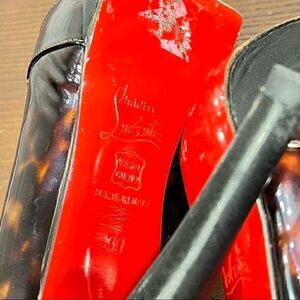 37 (7) CHRISTIAN LOUBOUTIN patent leather animal print lace up booties EUC