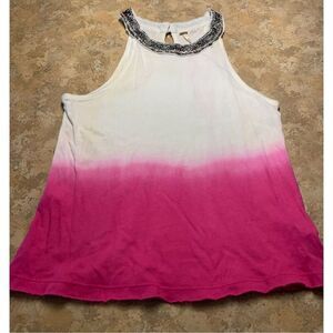 37- FREE PEOPLE PINK & WHITE OMBRÉ BEADED NECKLINE BOHO SWING TANK TOP