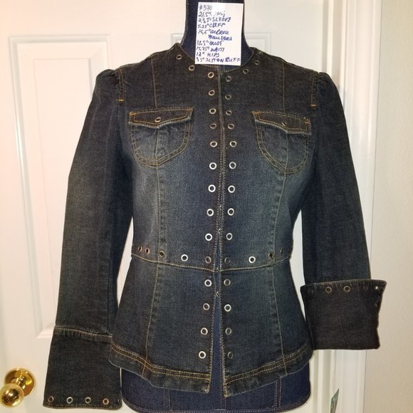 #370 NWT Classique Entier Grommet Premium Denim Jacket Sz. S P, NOT lined, OBO! Retails $178! Impeccable craftsmanship. See my other listings for complementary skirt.