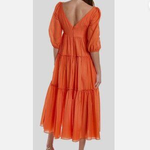 $371 Marchesa Notte Women's Orange Puff-Sleeve Tiered Voile Midi Dress Size 4