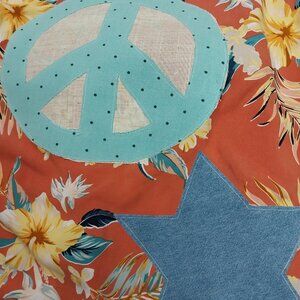 3739 Size Large Forever 21 Upcycled Applisqued Button Down Shirt. Pit to pit 20" length 28" sleeve 7.5".