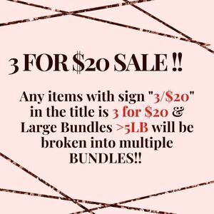 Bundle with 2 Other items Marked ๐ฅ3/$20๐ฅ by DM me and let me know the items Number you like and I will send the $20 OFFER + SHIPPING (We will Adjust the Shipping Depends on the items weight)!!