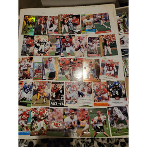 The product is a large lot of NFL trading cards that includes a variety of vintage and modern inserts, as well as rookie cards. Making it a valuable collection for any football card collector or fan of the team. The cards featured in the lot likely include a mix of popular players and lesser-known gems, providing a diverse and exciting set for any fan of the sport.