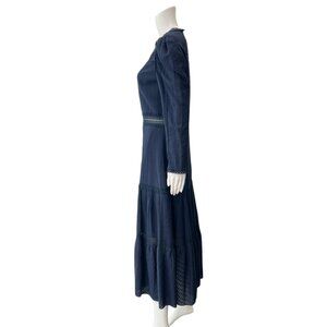 $375 NWT La Vie Blue Midnight Navy Ribbon Embroidered LS Dress size Medium