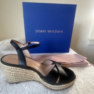 $375 STUART WEITZMAN ROSEMARIE ESPADRILLE WEDGE SANDAL BLACK 7B Box/Dustbag incl