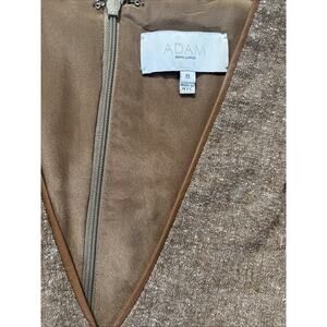 Adam Adam Lippes Women's Brown Wool Silk V Neck Shift Dress in size 8; Made from silk & wool this dress features a flattering V-neckline, sleeveless design, and a knee-length shift silhouette. The rich brown color makes it a chic option for parties, cocktails, or casual outings during the summer, fall, and spring seasons. With its elegant craftsmanship and timeless style, this dress is sure to become a staple in any woman's wardrobe.