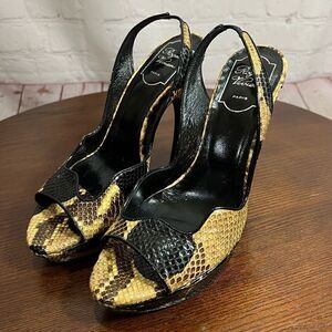 37.5 ROGER VIVIER Python snakeskin Sling back sandals with platforms