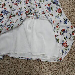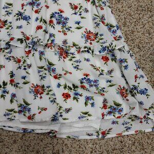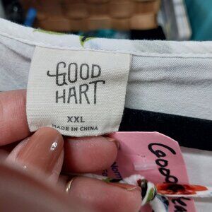 3765 Size XXL Good Heart Lined Tunic Dress in Red and Blue floral Print. Pit to pit 26" length 37" sleeve 18".
