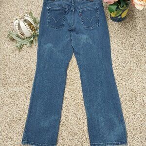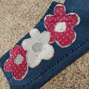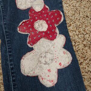 37855 Size 12 Upcycled Levi't Appliqued With Quilted Flower Trim.