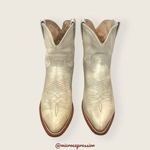 @linniesd2000 Hi there! The last several photos are self-taken of the actual boots. These are in stunning condition. They are not metallic at all. These are a beautiful tan color with hints of light yellow. Feel free to send an offer as I always accept or counteroffer! ❤️