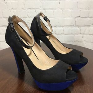 Covered 4.5 heels in blue as well as it’s 1 inch platform.